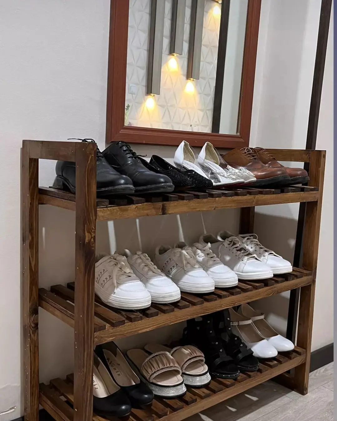 جا کفشی چوبی شکیل و زیبا در سه طبقه طراحی شده کار به صورت تکه تکه و کتاب شده ارسال میشه منزل سرهم میکنید