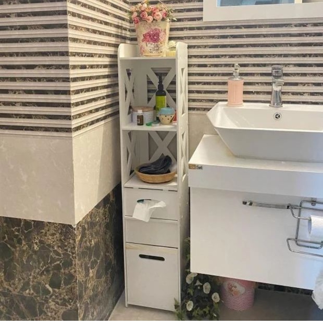 استند سطل و دستمال با طراحی زیبا و چشم نواز، بسیار کاربردی دارای سطل زباله جای دستمال قسمت بادبزنی برای انداختن زباله، و طبقه برای قرار دادن وسایل بهداشتی و آرایشی، مناسب استفاده در حمام، سرویس بهداشتی، اتاق و اشپزخانه، جنس پی وی سی درجه یک با تراکم بالا هست ضد آب و قابل شست و شو هست. نکته کار به صورت کتاب شده ارسال میشه منزل سرهم میکنید اتصالات هم چفت داره هم جای پیچ